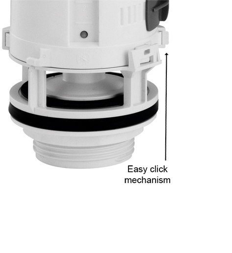 Supplied with comprehensive fitting instructions, this product could not be easier to install. With an easy to use click-lock fitting, this button can be fitted quickly and securely. This button is also supplied with a collar/shroud, this enables the button to fit a range of lid holes (from 16mm to 50mm) or so it can sit above the surface of the cistern lid